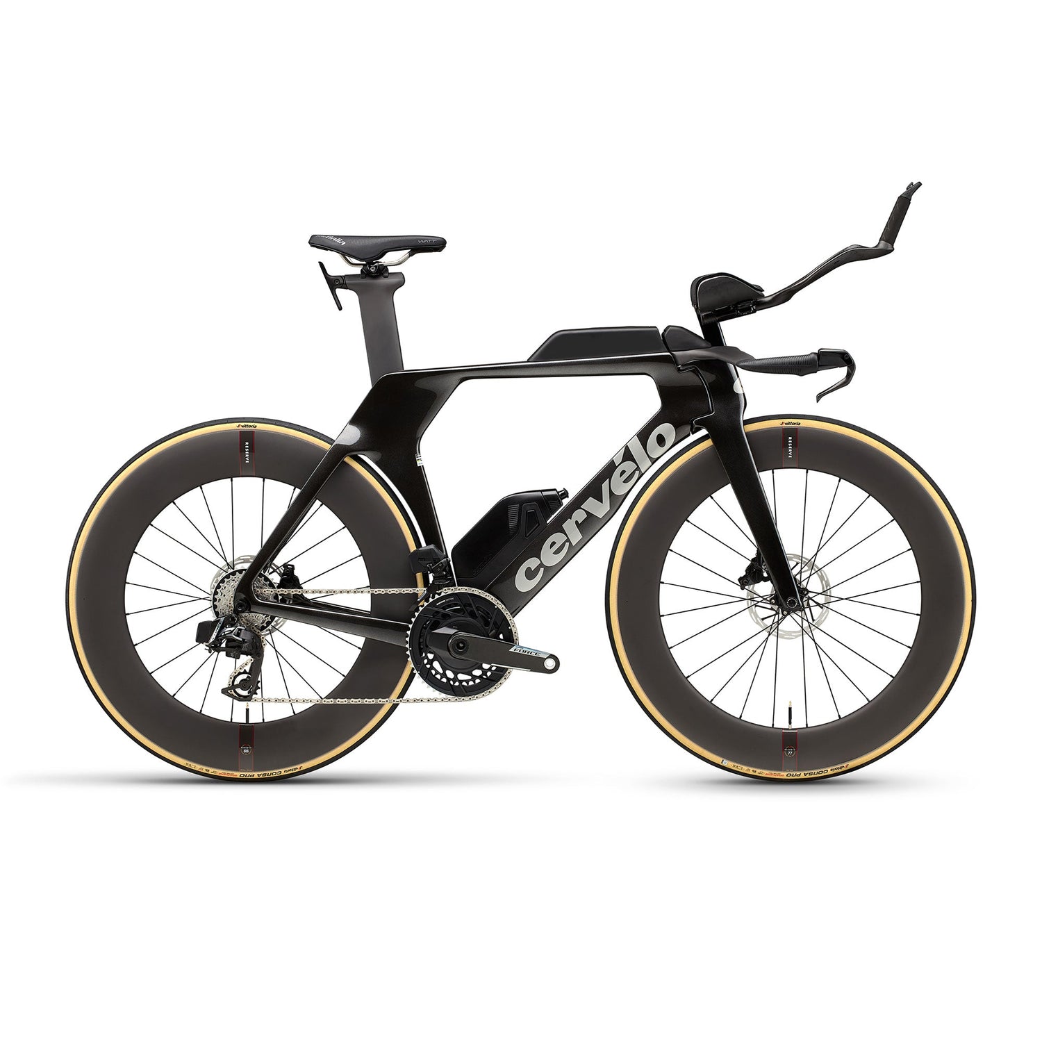 - Cockpit: Integrated Cervélo aero handlebar and stem system for optimized fit and aerodynamics
