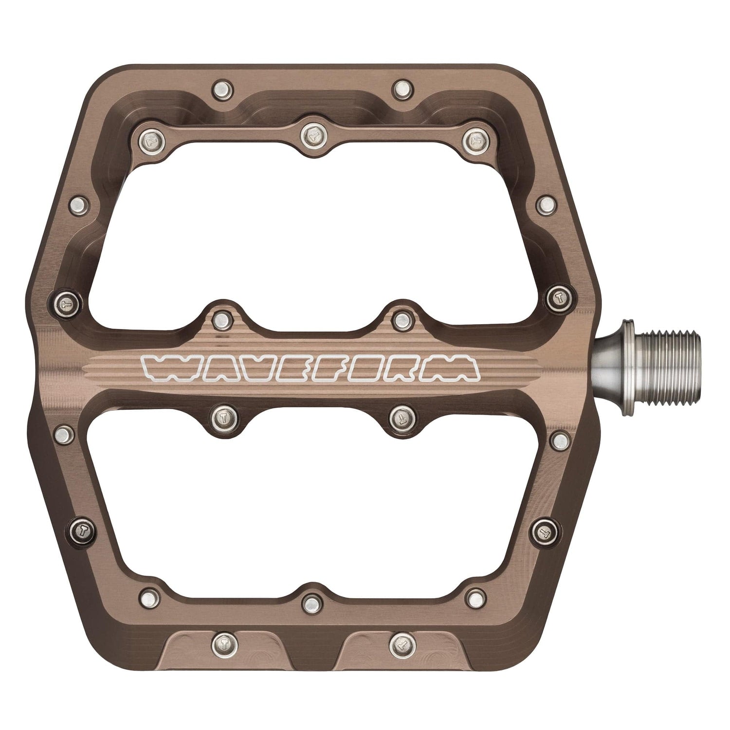 The Wolf Tooth Waveform Aluminum Pedals fit all standard cranks with 9/16"-20 tpi right- and left-hand threads. As with any premium pedal system, we recommend applying precision grease to the pedal threads before installation. Pin height can be tuned by removing pins with a 3mm hex tool for riders who prefer a slightly less aggressive interface.