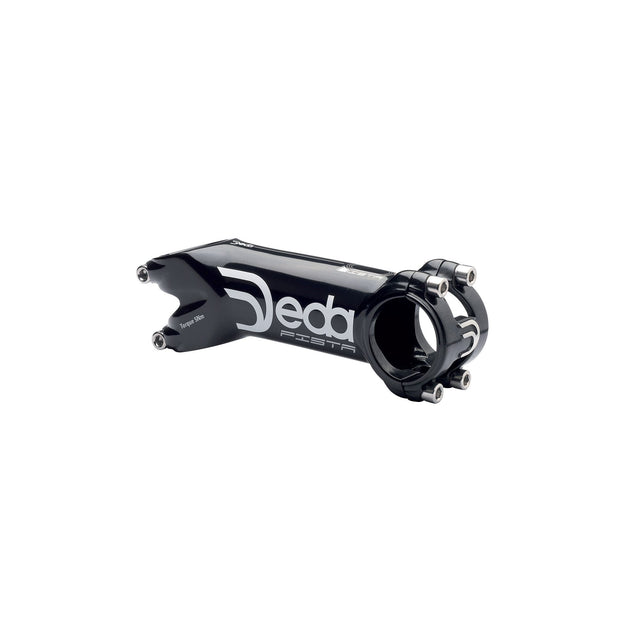 La potencia Pista de Deda está diseñada para la posición de sprint: va baja, muy baja. En concreto, tiene un ángulo de 70 grados, o -20. Eso es en comparación con una potencia que teóricamente está a 90 grados, es decir, una que es perpendicular al tubo de dirección. Está por debajo del paralelo: una potencia plana en la actualidad tiene un ángulo de 73 grados, y esto está por debajo de eso.