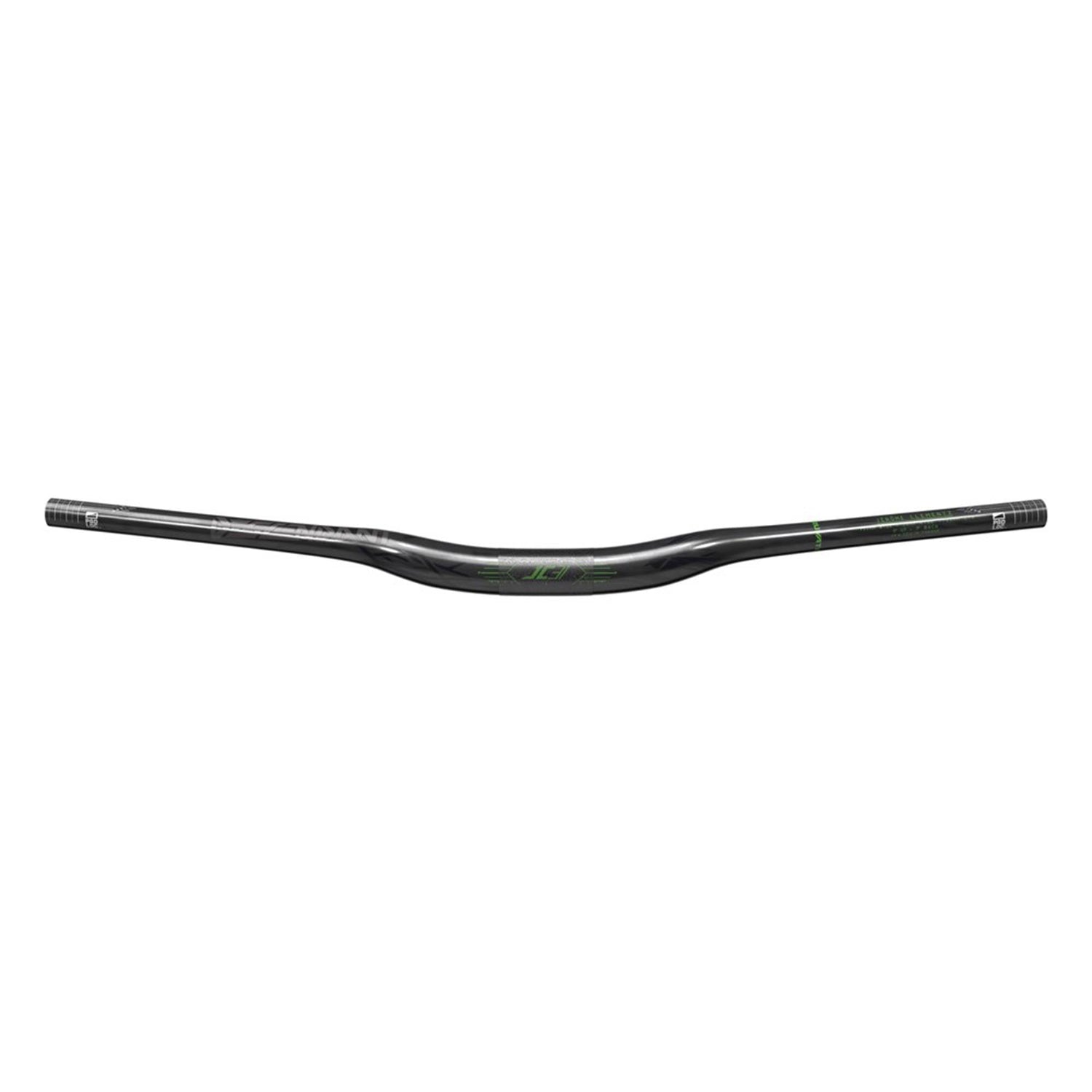 La barra tiene un ancho inicial de 760 mm y las líneas de corte serigrafiadas facilitan el estrechamiento, si es lo que buscas. El retroceso es de siete grados, la elevación de 20 mm y el ascenso de cinco grados. Los detalles de color son verde brillante.