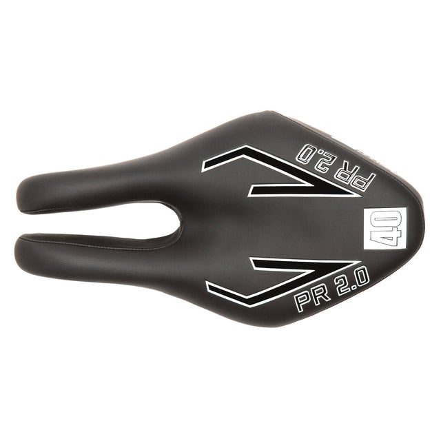El PR 2.0 se sitúa entre los otros dos sillines de la gama Performance Recreation. Un poco más largo (250 mm) y con un acolchado ligeramente inferior, el PR 2.0 se sitúa en ese punto intermedio que tanto los ciclistas aficionados como los triatletas serios apreciarán. Se especifican como sillines recreativos porque tienen más acolchado. En este caso, el PR 2.0 tiene el nivel de acolchado de la serie 40. Las capas dobles de espuma y gel ayudarán a mantener las tuberosidades isquiáticas acolchadas cuando te sientes más erguido, mientras que el diseño sin punta y en horquilla eliminará cualquier presión que normalmente pondrías en tu tejido blando al usar un sillín convencional. Dado que tiene 130 mm en su punto más ancho, tendrás una plataforma generosa para descansar el trasero. El sillín ha sido diseñado específicamente para ofrecerte esa plataforma ancha donde la necesitas, pero luego se ha adelgazado hacia la parte delantera para permitir movimientos de pedaleo sin obstáculos.