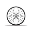 Extrañamente ligera, pero tranquilizadoramente sólida y bastante aerodinámica. Lightweight puede crear todo lo que ofrece la Gipfelsturm gracias a su conocimiento de los materiales y a la forma en que construye las ruedas. La rueda que antes se llamaba Ventoux está construida como todas las Lightweight: con radios de fibra de carbono que van desde la llanta hasta el buje y vuelven a la llanta, para luego tensarse y fijarse con epoxi. Los radios están tensados ​​de manera uniforme y alta, lo que garantiza que la rueda sea rígida lateralmente, redonda y precisa, y que se mantenga así pase lo que pase. Utilizan 20 radios delante y 24 detrás, una concesión a la llanta tubular ultraligera de 27 mm de profundidad que se utiliza.