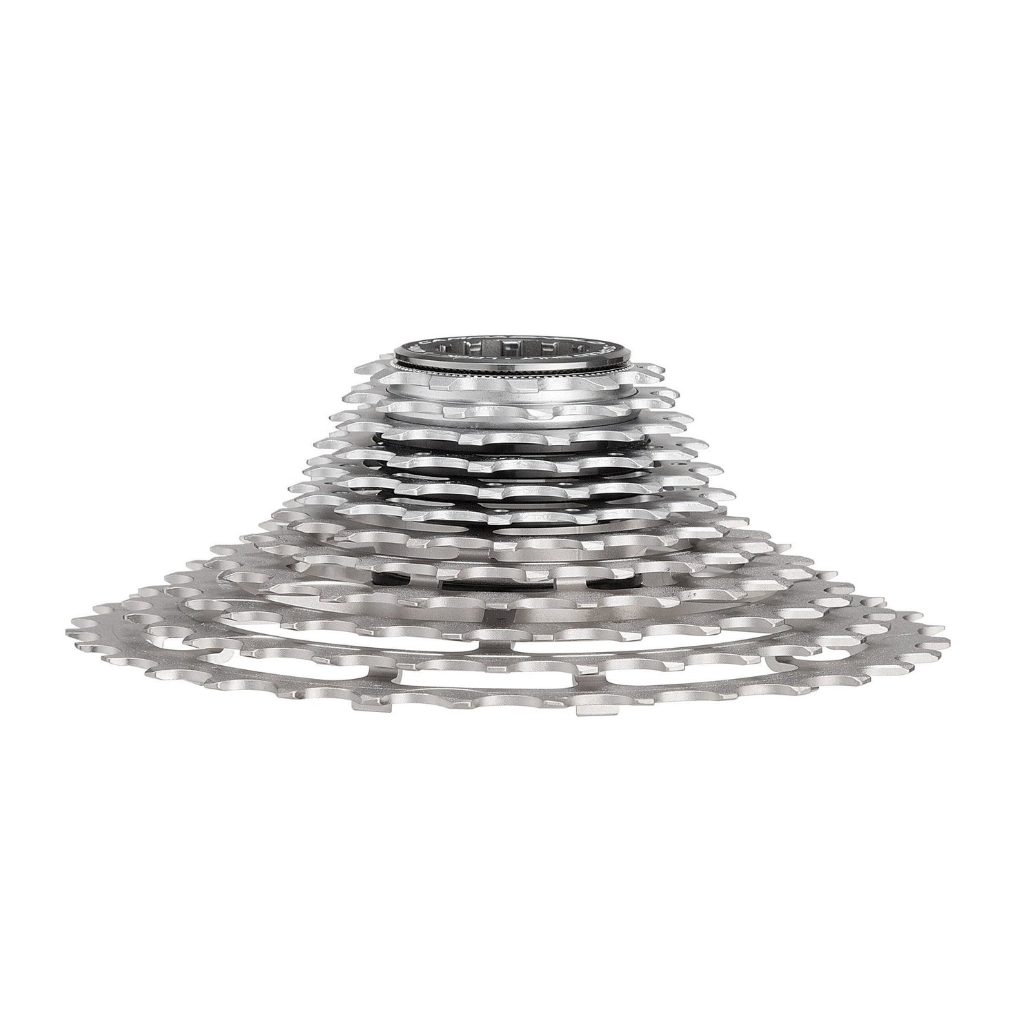 El cassette Super Record de 12 velocidades de Campagnolo ofrece al ciclista características que ahorran espacio, como piñones más delgados y dimensiones más ajustadas. Este diseño le permite utilizar el nuevo registrador de 12 velocidades en su estándar de buje libre anterior, lo que le permite mantener su juego de ruedas y cuadro actuales. Incluso con 12 velocidades, Campagnolo apunta a brindar la mejor combinación de peso mínimo y máxima durabilidad. En general, el cassette pesa 266 gramos y cuenta con una araña de aluminio en los seis piñones más grandes para agregar rigidez.