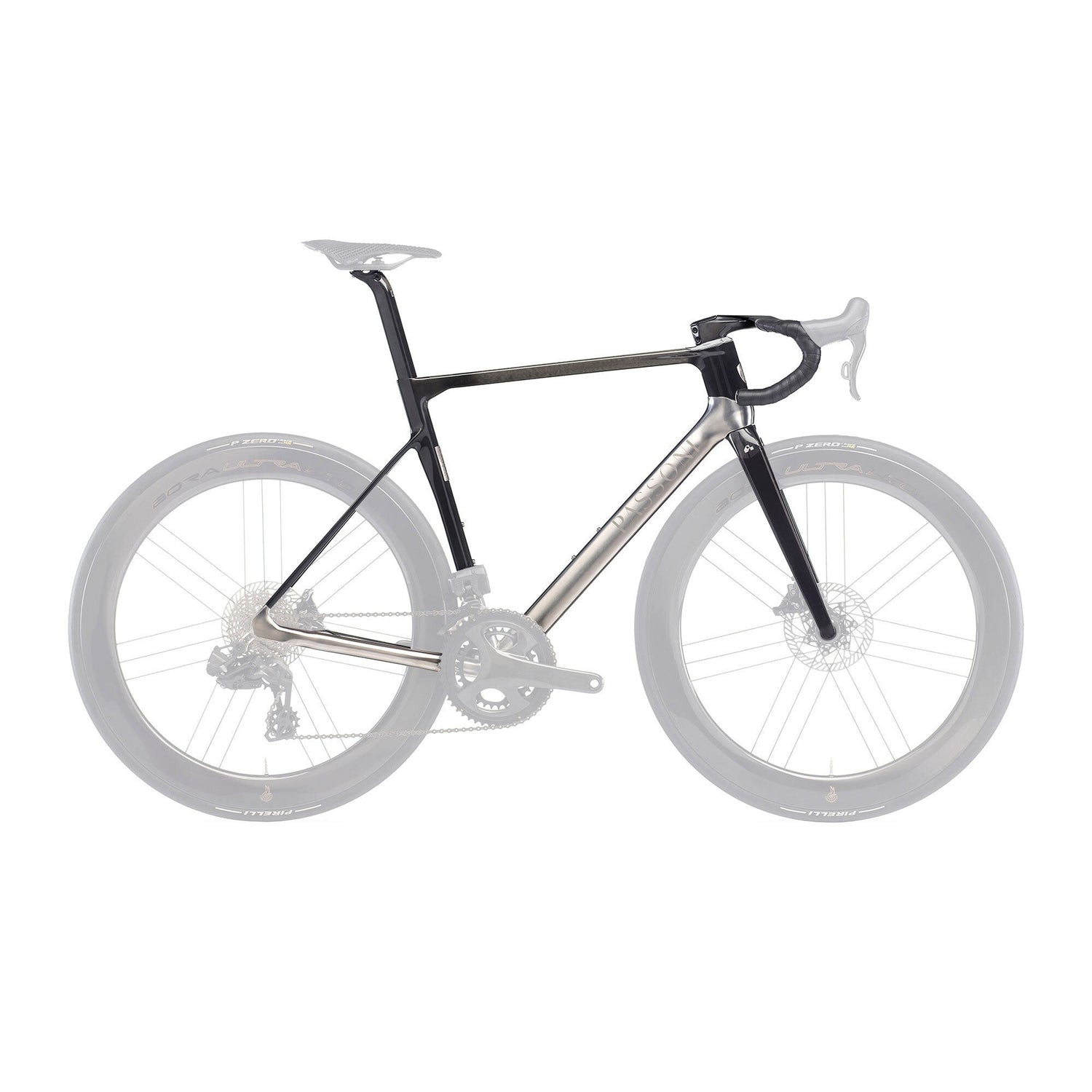 Constructed from high-grade titanium tubing, the frameset provides a unique combination of low weight, durability and road-smoothing compliance. Passoni’s shaping and weld techniques enhance torsional stiffness for precise handling, while the inherent characteristics of titanium deliver a smooth, controlled feel across long distances and varied road surfaces. The result is a frameset that maintains speed effortlessly while remaining comfortable for endurance-focused riding.