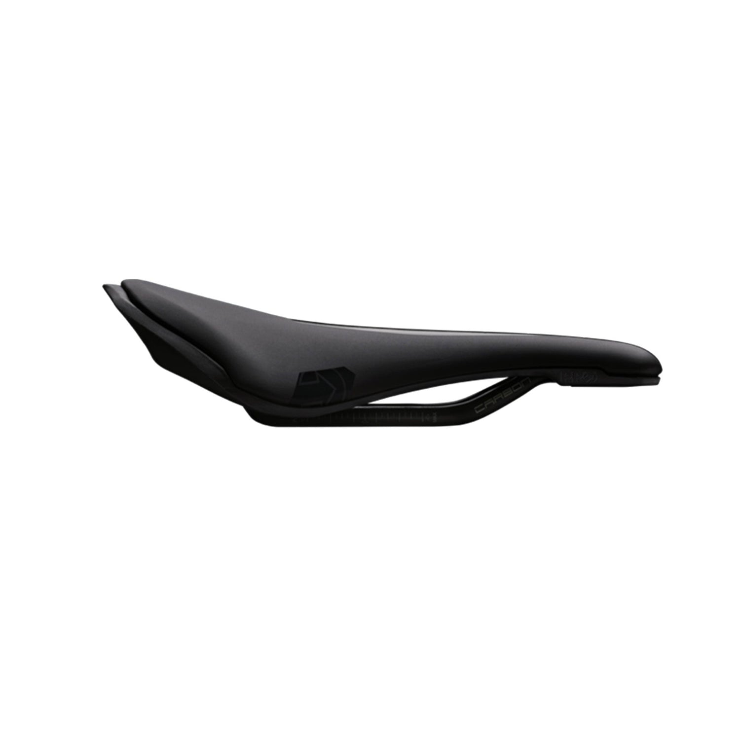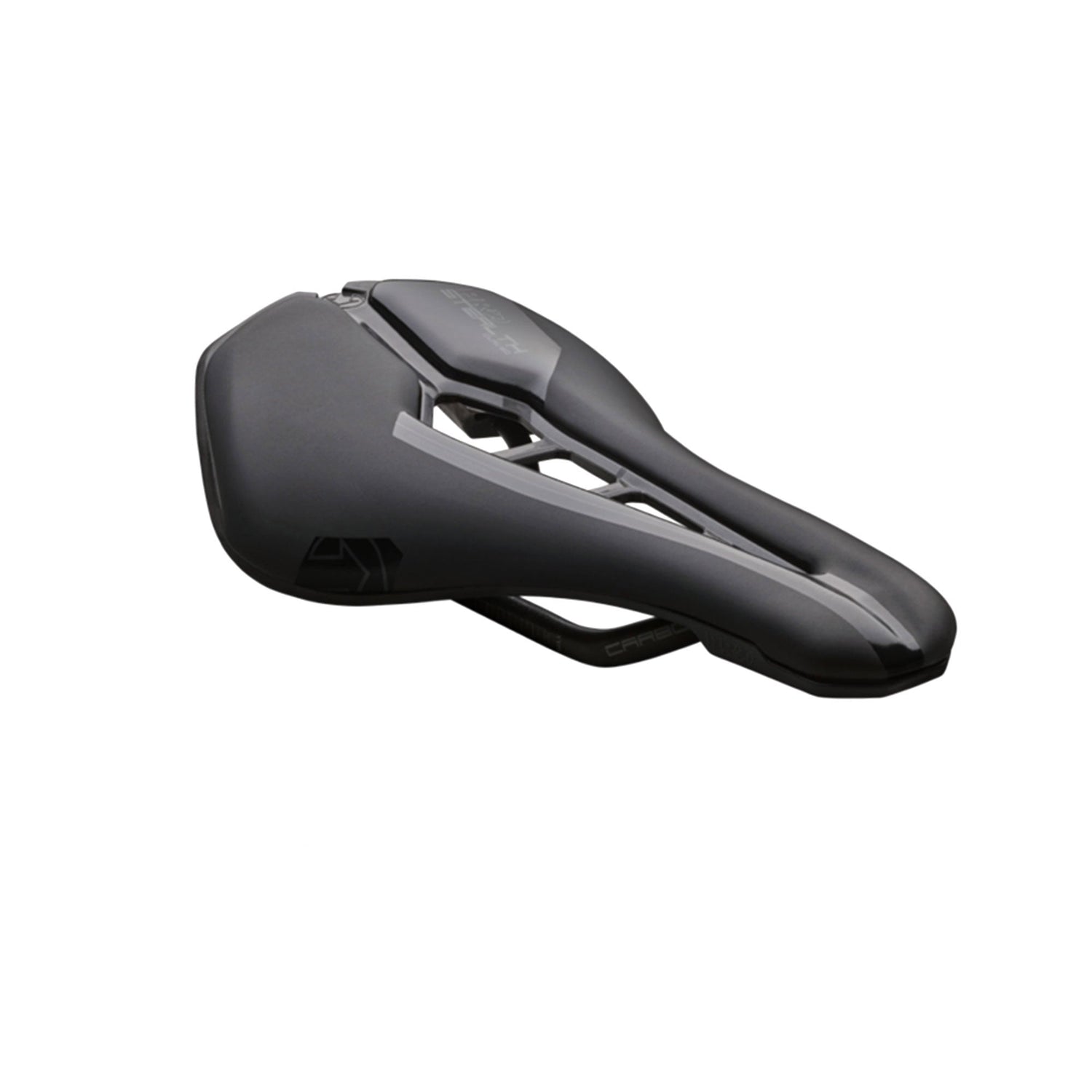 The PRO Stealth Curved Team Saddle is a short-length, wide-nosed saddle designed for competitive road cyclists who maintain an aggressive, aerodynamic position. Its shape makes it ideal for riders who move side to side as they pedal. Its rounded rear profile and slightly narrower nose compared to the standard Stealth Saddle facilitates smooth side-to-side movement during the pedal stroke. The elevated rear section supports an efficient riding posture. Built with a carbon-reinforced polymer base, carbon rails, and lightweight EVA padding, the saddle delivers a balance of durability, comfort, and low weight. A broad anatomic fit recess reduces pressure in the perineal region, enhancing comfort on long rides. The PRO Stealth Curved Team Saddle is great for riders who want to go fast and move naturally.