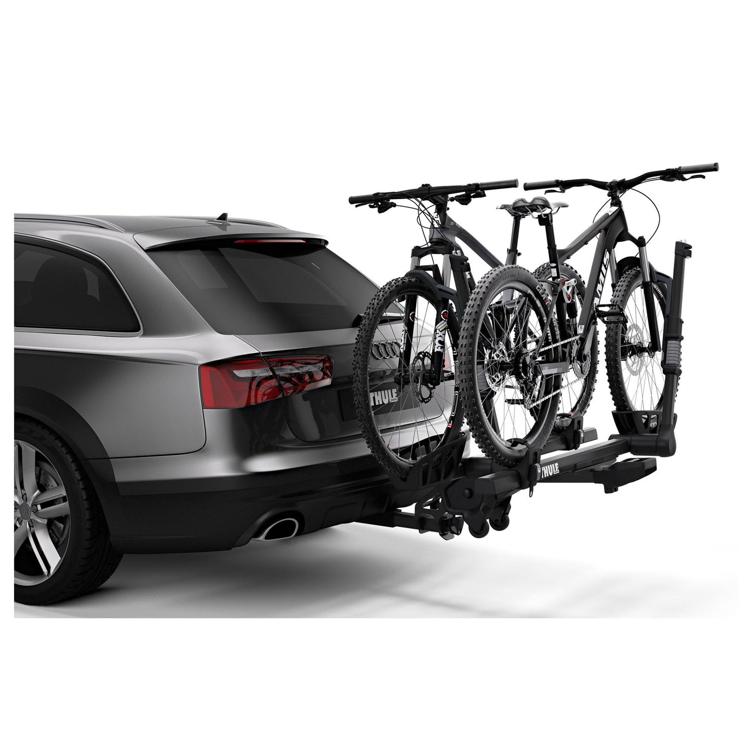 The Thule T2 Pro XTR 2” 2 Bike Rack is a heavy duty rack that can store virtually any size bike for your commute. Any bike up to 60 lbs can be stored on the rack without any frame contact. The lack of frame contact is accomplished through generous spacing and side to side movement of the mounts to eliminate unwanted interfacing. An integrated cable lock and lock knob keeps the bikes secure on the rack and the rack secure on the receiver. The AutoAttach system makes the rack very easy to mount on your car without the need for any tools. A HitchSwitch lever tilts the rack down with or without bikes on it, making the rear of your vehicle more accessible. With space for 20-29” wheels and tires up to 5” wide, this rack is perfect for anything from carbon frames to fat bikes. The Thule T2 Pro XTR is a versatile and reliable bike rack for your most heavy-duty machines.