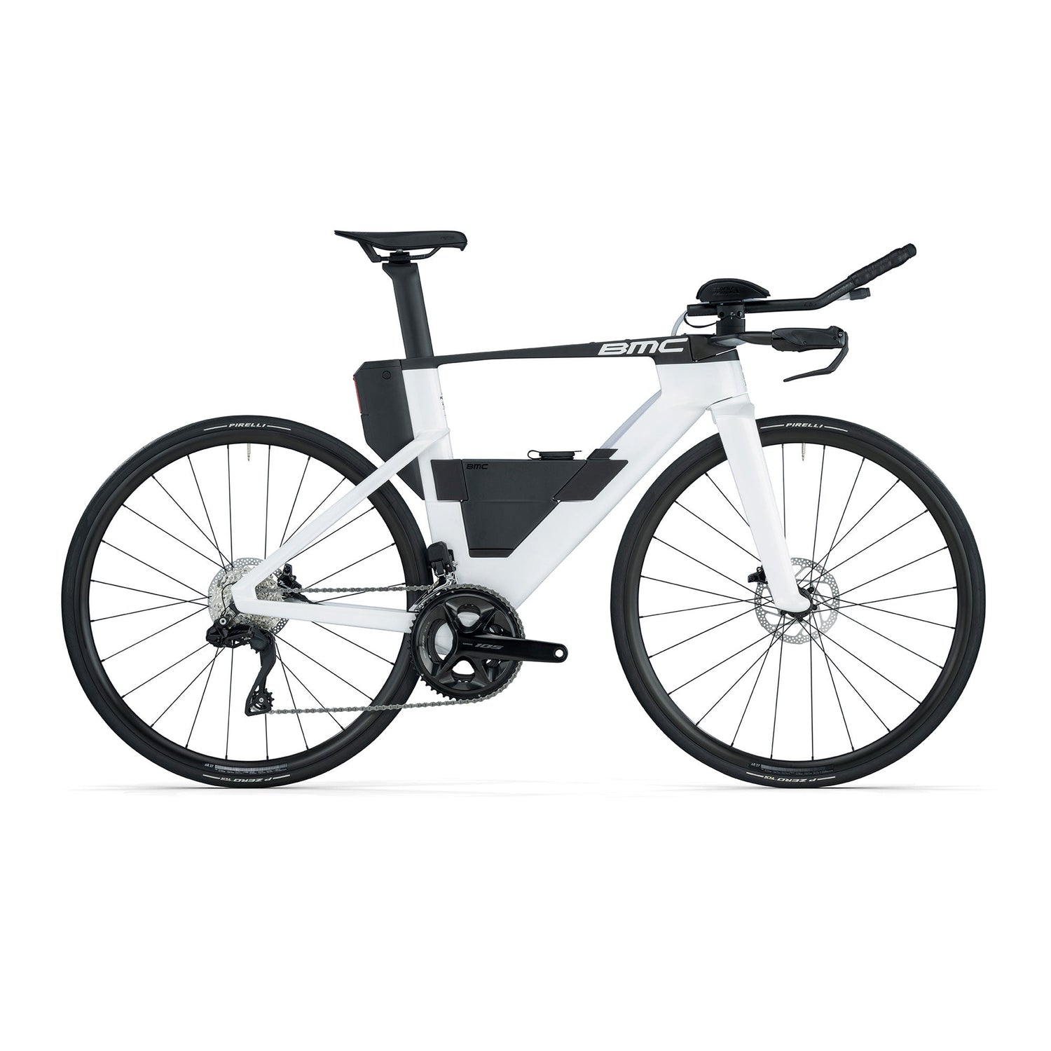 The Speedmachine 01 is one of the most advanced bikes that has ever been made for some of the best athletes on the planet. Backed by the BMC Pro Triathlon Team, the Speedmachine has already proven itself in elite competition. This version is equipped with a Shimano 105 Di2 groupset, providing affordable 12-speed electronic shifting. Unmatched speed and aerodynamics along with practical storage and hydration make it a top choice for triathletes.