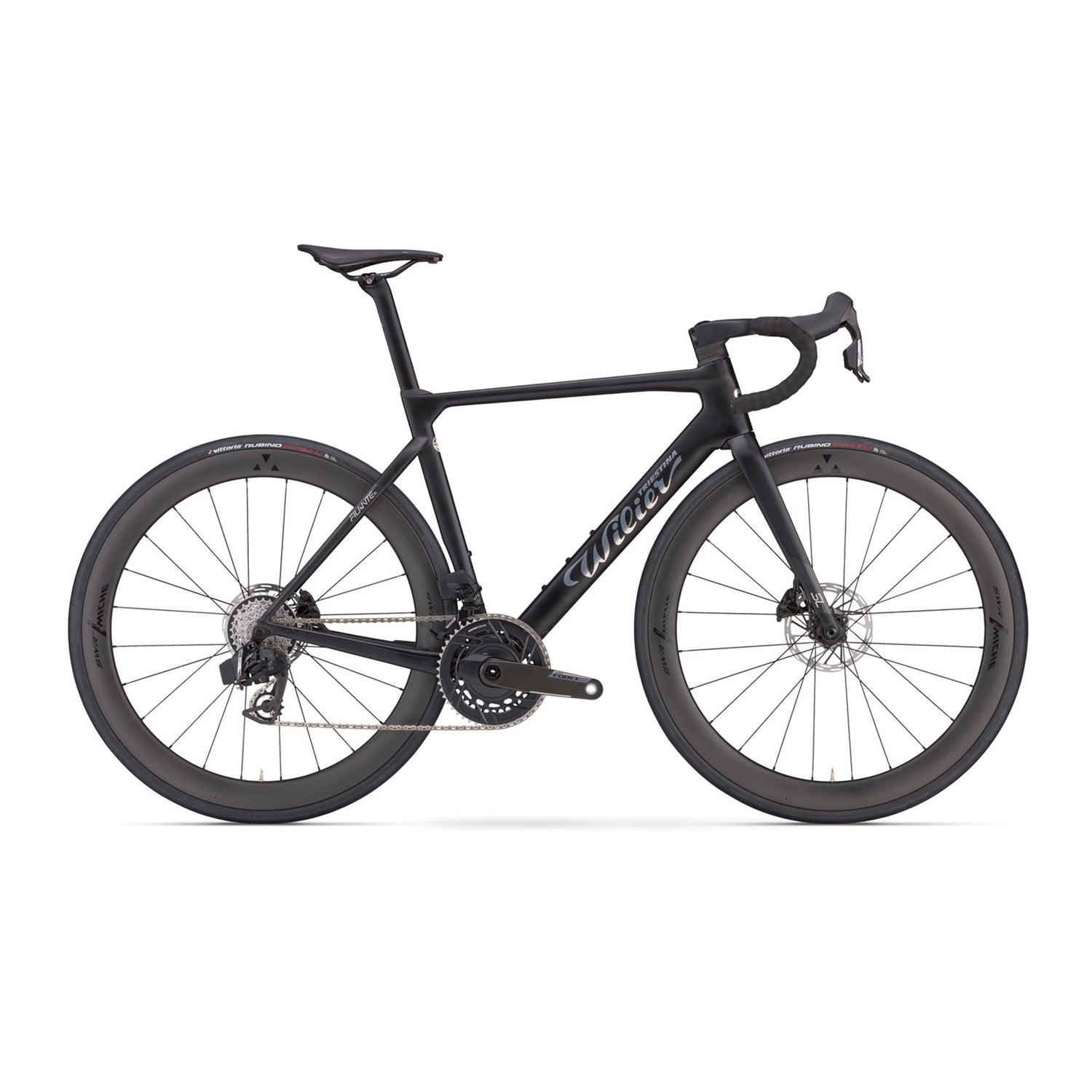 The carbon frame features carefully shaped aero tube profiles that reduce drag while preserving a balanced, confident ride feel. Wilier tuned the Filante SL to offer strong lateral stiffness for sharp accelerations and responsive handling, paired with enough compliance to remain comfortable during long training rides and fast-paced group sessions.