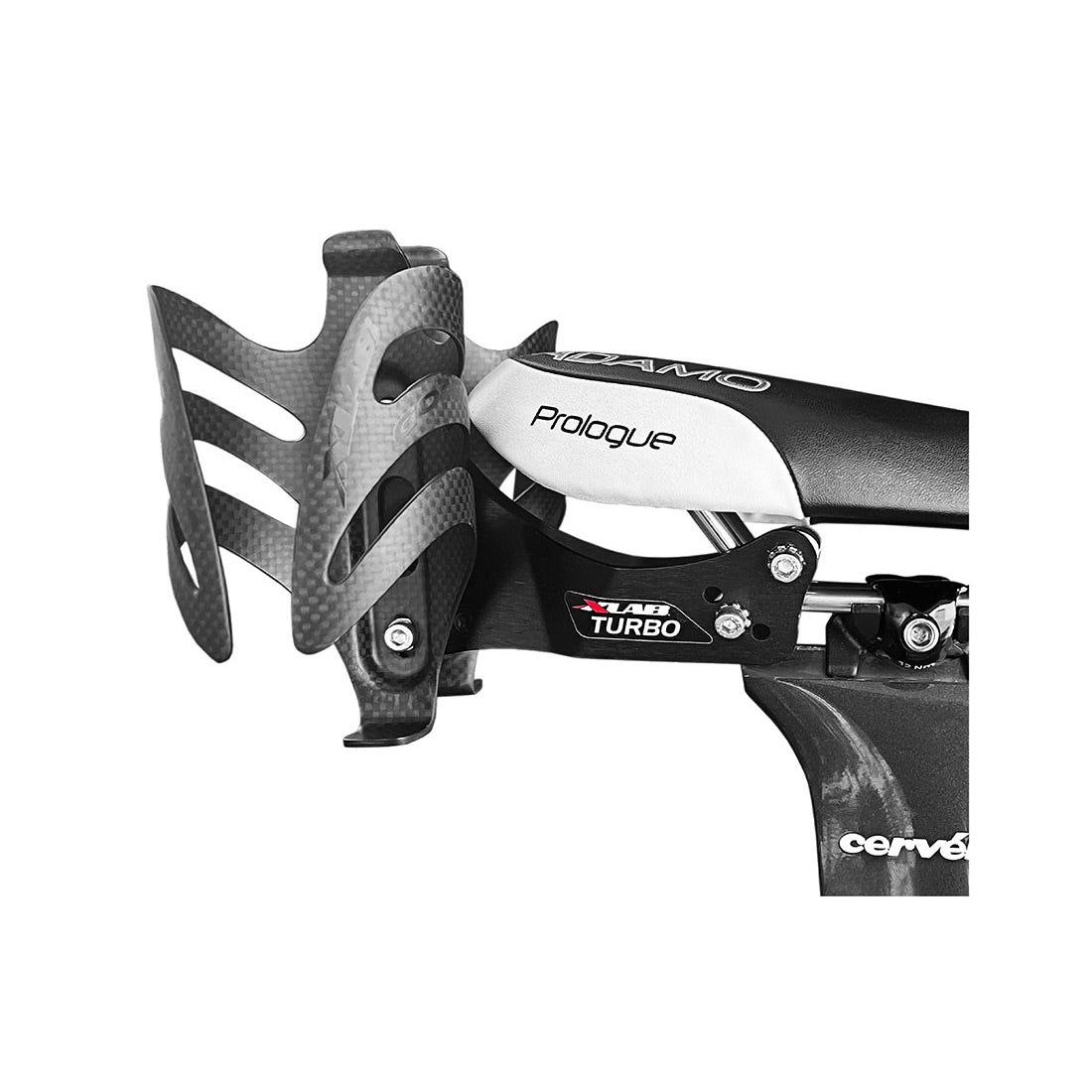 The XLAB Turbo Wing System allows you to mount two bottles simultaneously behind your saddle. The bottles remain out of the way in the most aerodynamic fashion possible. The wind tunnel proved that this system can save 98 seconds through a full triathlon. It still remains incredibly strong and lightweight. This version comes equipped with two carbon fiber Gorilla cages. At the back of the Wing System, you can add a small bag to carry extra tools. The XLAB Turbo is the best way to keep your bike equipped with everything you need.